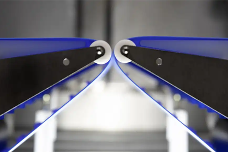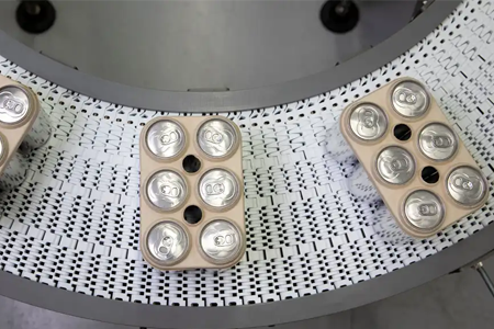 Intralox’s S2300 Flush Grid Nose-Roller Tight Turning Belt uses industry-leading design to meet radius challenges by analyzing belt speed, load distribution, and turn and width severity.