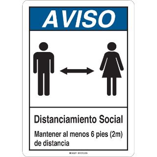 Covid 19 Sign 7X10, Spanish Notice Social Dist, High Impact Styrene BL/WH