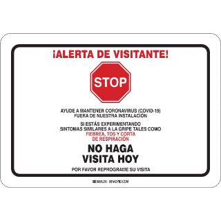 Covid 19 Sign 10X14, Spanish Visitor Alert Cv19, Aluminum RD on BK/WH