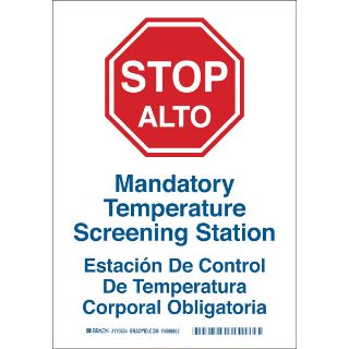 "Temperature Screening Bi-lingual (COVID-19) Polyester Sign 10""H x 7""W BL/RD"