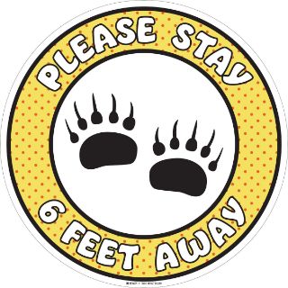 "Please Stay 6 Feet Away Kids Bear (COVID-19) Vinyl Floor Sign 17""Dia YL/WH"