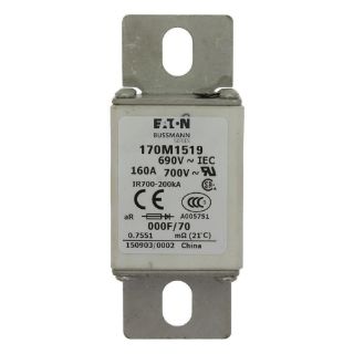 Bussmann High Speed Fuse, Semi-Conductor, Indicating/Non-Indicating: Non-Indicating, 160 A, 1000 V, 200 kA Interrupt, Class: AR, 5.433 in L x 0.315 in W x 2.087 in H Body Size