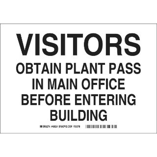 "VISITORS Obtain Plant Pass In Main Office Before Entering Building Sign, 14"" H x 20"" W x 0.1"" D, Fiberglass"
