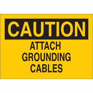 "CAUTION Attach Grounding Cables Sign, 10"" H x 14"" W x 0.1"" D, Fiberglass, Black on Yellow"