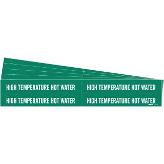 HIGH TEMPERATURE HOT WATER Pipe Marker Style 4 White on Green 4 per Card, 5 PK