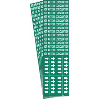 HOT WATER Recircul Pipe Marker Style 3C Arrows WT on GN 3 per Card, 5 PK
