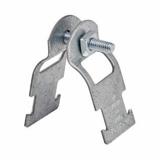B-Line Pipe Clamp, 2-Piece, Series: B2000, 1/2 in Conduit, 400/50 lb, 0.701 to 0.875 in Outside Dia, 16 ga Thickness, Channel Mount, For Use with: Thinwall EMT/IMC/Rigid Conduit/Pipe, Steel, Pre-Galvanized